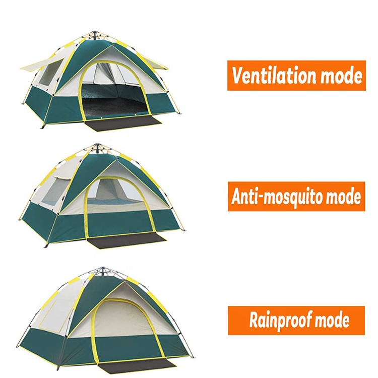 पॉप अप तंबूच्या छताच्या तीन बाजूच्या खिडक्या आणि एका दरवाजामध्ये एकूण 4 उघडणे आहेत, जे थंड वारा नाकारण्यासाठी हिवाळ्यात पूर्णपणे बंद केले जाऊ शकतात आणि उन्हाळ्यात थंड हवेचा आनंद घेण्यासाठी सर्व उघडले जाऊ शकतात.